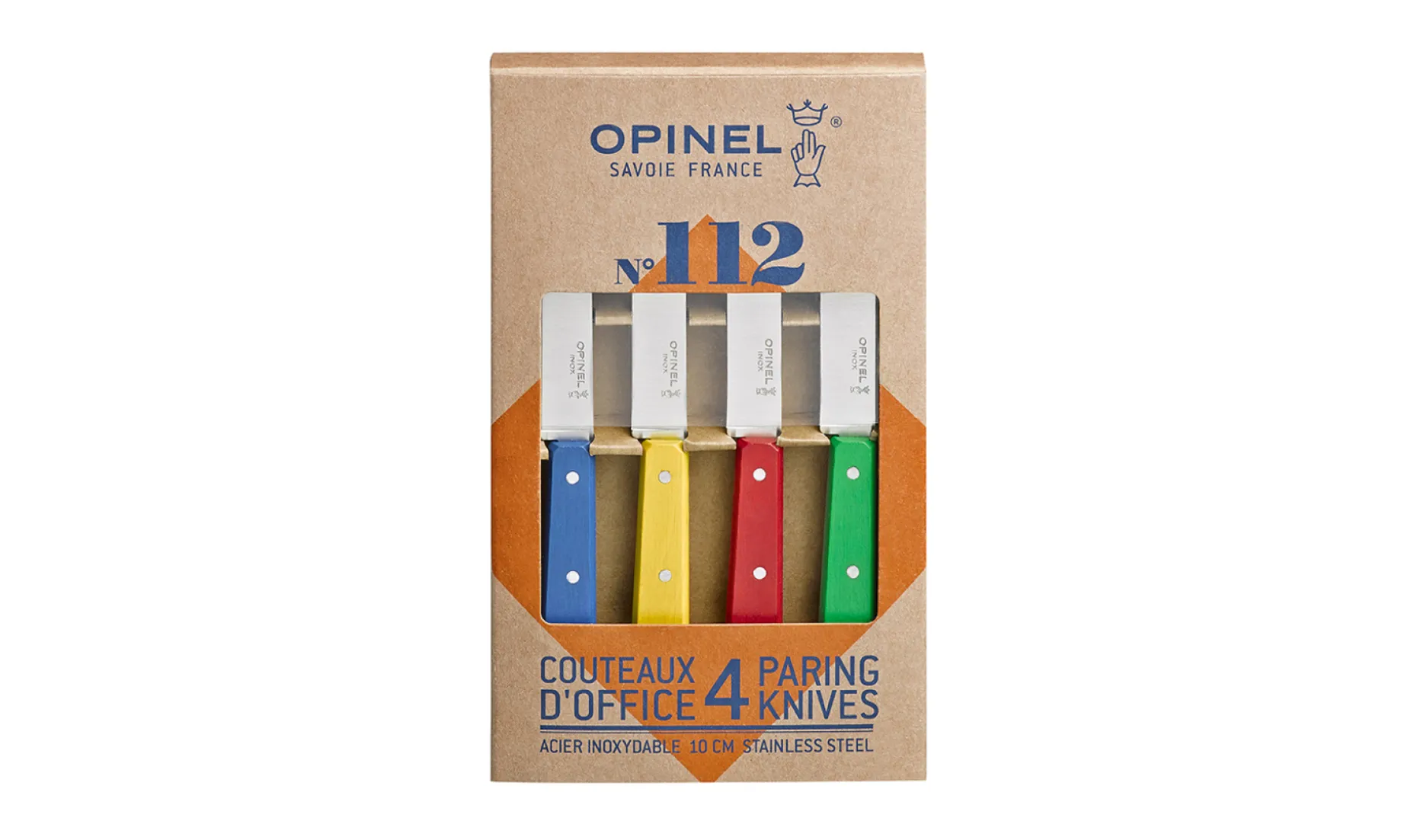 Le coffret regroupe 4 couteaux d’Office N°112, le petit couteau polyvalent indispensable pour peler fruits et légumes, trancher, émincer.