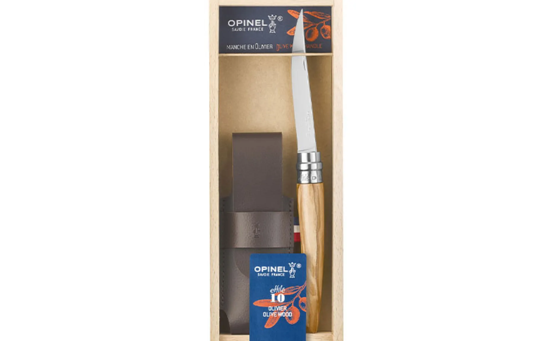 Le couteau de poche Effilé 10 Olivier est équipé d’une lame en acier inoxydable finition poliglace de 10 cm. Elle possède une forme urbaine et sécurisante avec un bout légèrement arrondi. Le manche en bois d’olivier est possède une silhouette épurée et est agréable en main. Ce couteau fermant possède une virole de sécurité Virobloc® qui bloque la lame en position ouverte et fermée.